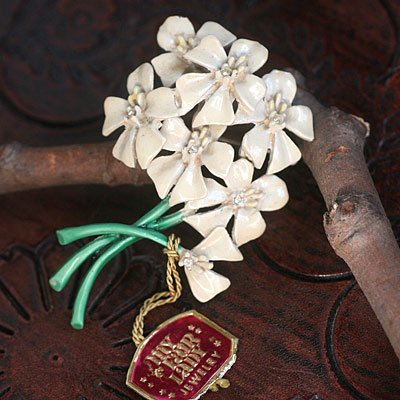 On the back are engraved MY FAIR LADY and B.S.K. B.S.K. was based in New York and continued from 1948 to 1983. The brand name comes from the initials of the three founders, Benny Steinberg, Hy Slovitt & Kaslo. You can often find costume jewelry with unique designs.