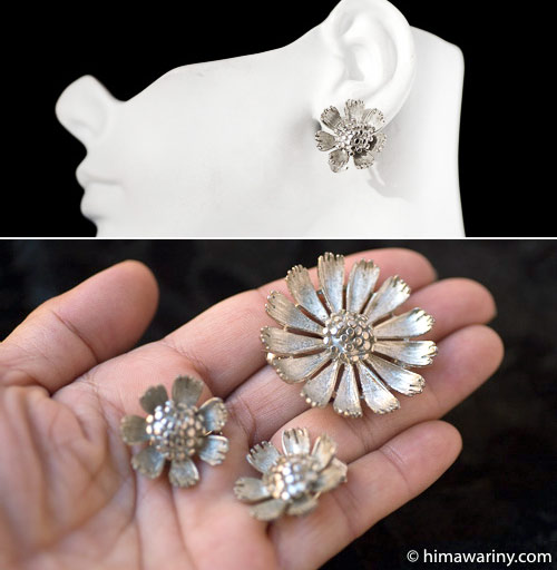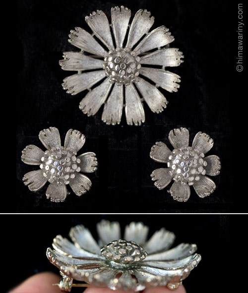 BSK-Silver Daisy Brooch & Earrings