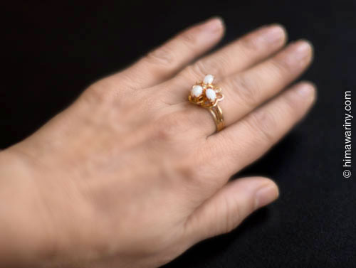 It is a stylish item with gold spiral lines that flow to connect the stones, creating a flower-like shape as a whole.