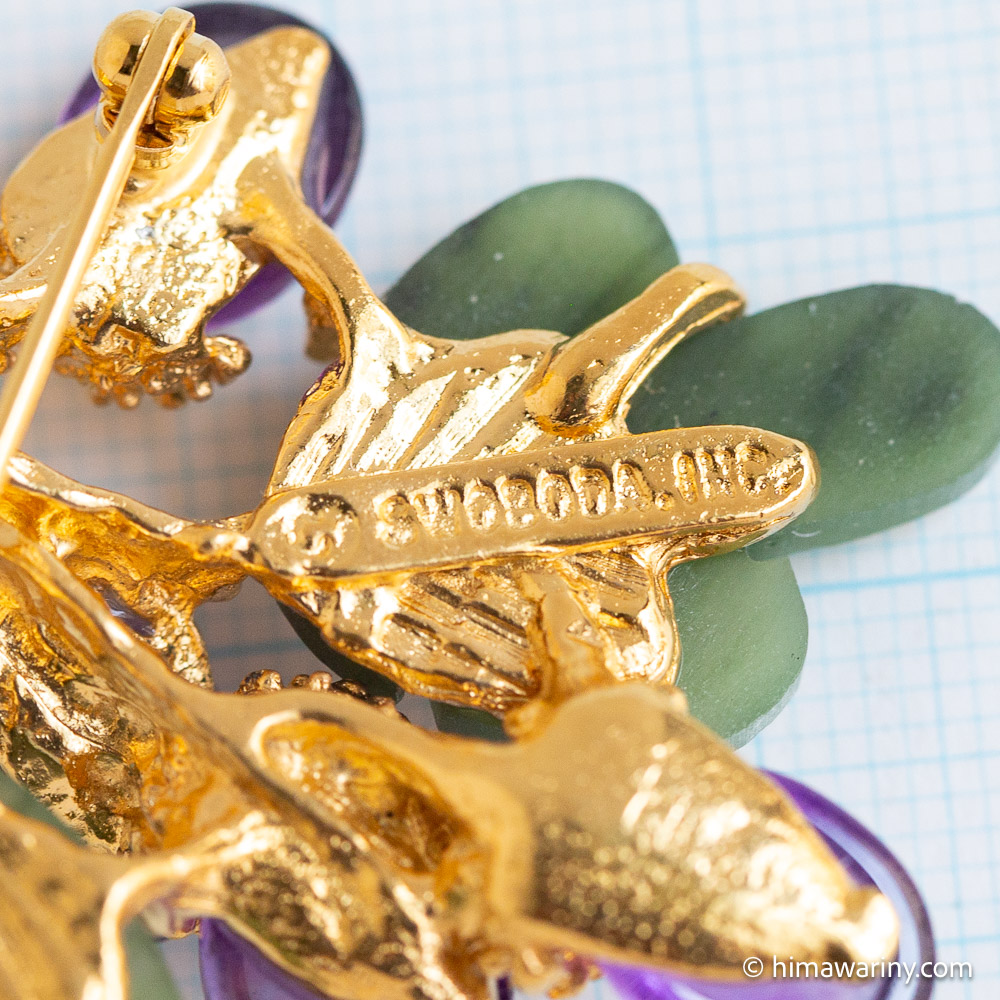 Swoboda/Swoboda Vintage brooches are known for their colorful use of polished natural stones, as well as for their wonderful designs with natural motifs such as birds, flowers, and insects, rather than the ‘typical’ cut jewellery. You can