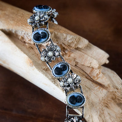 ●Color, material: Antique silver color metal, resin cameo cabochon, fake pearl