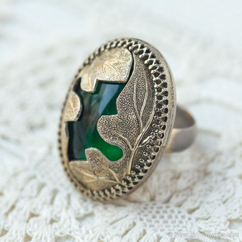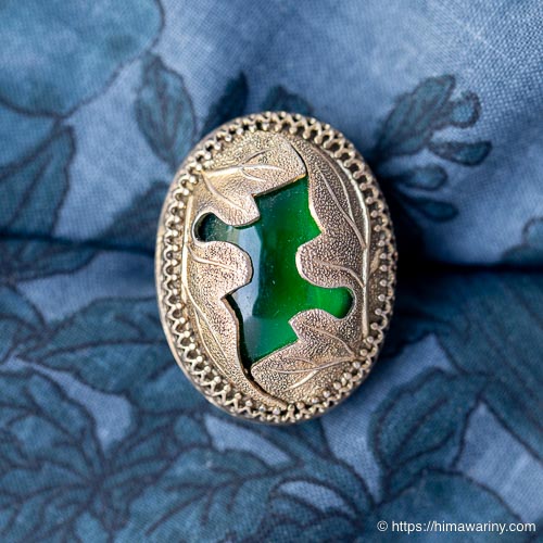 ●Color, material: Silver-colored metal with a slight gold tinge, glass cabochon
