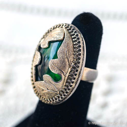 ●Size: US 7.25 (approximate Japanese ring size = 14 to 15 (the ring is not closed and one end fits into the hole, so it is possible to widen it further.), oval part-approx. 33 mm x 25mm